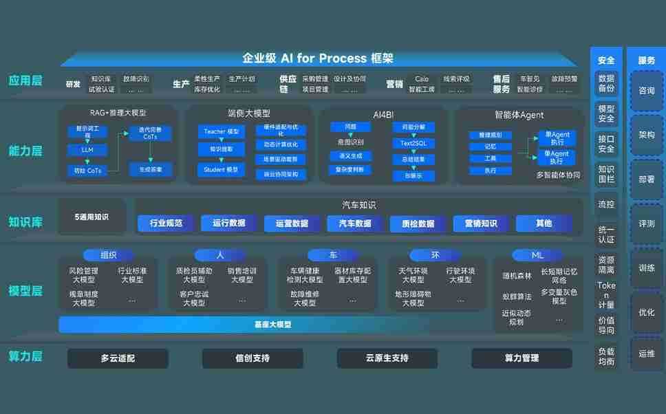端到端的一站式AI工作空间深度融合了从企业战略规划到日常经营的全流程业务板块,,,,定向解决车企内部领域多、、、、部门多、、链条长、、、场景碎片化等难题,,,,支持车企快速构建以AI为核心的生产力写作体系,,实现任务执行与AI能力的无缝集成与交互