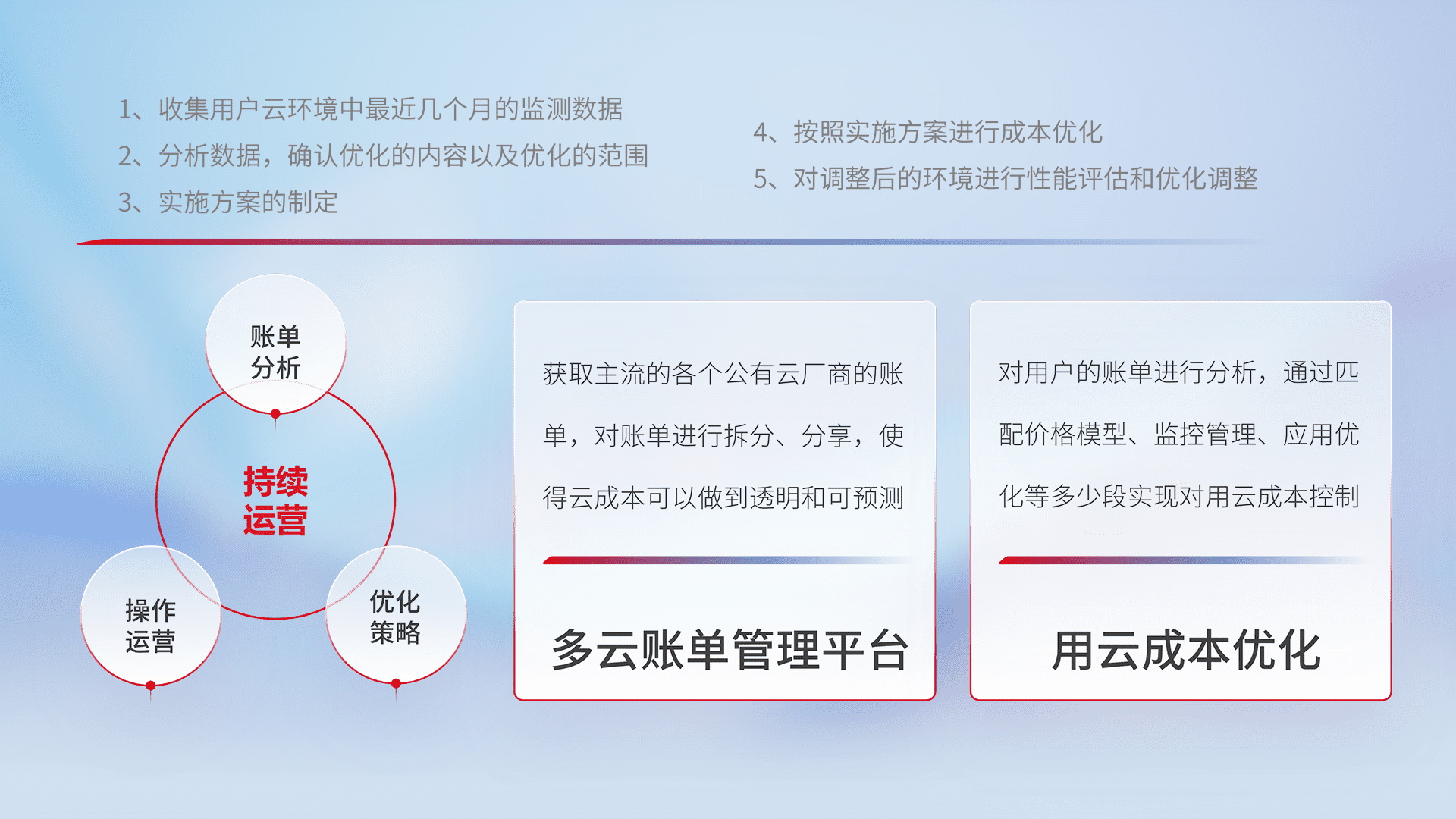 运用智能化工具分析云资源,,提供日常费用可视化工具,,,自动账单拆分,,,,成本优化云上费用,,,降本增效。。